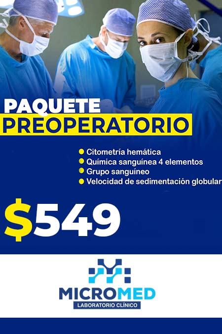 Preoperatorio es un conjunto de pruebas médicas que solicita una persona Especialista previo a una intervención quirúrgica.